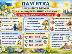 ПАМ’ЯТКА для учнів та батьків на період весняних канікул в умовах воєнного стану