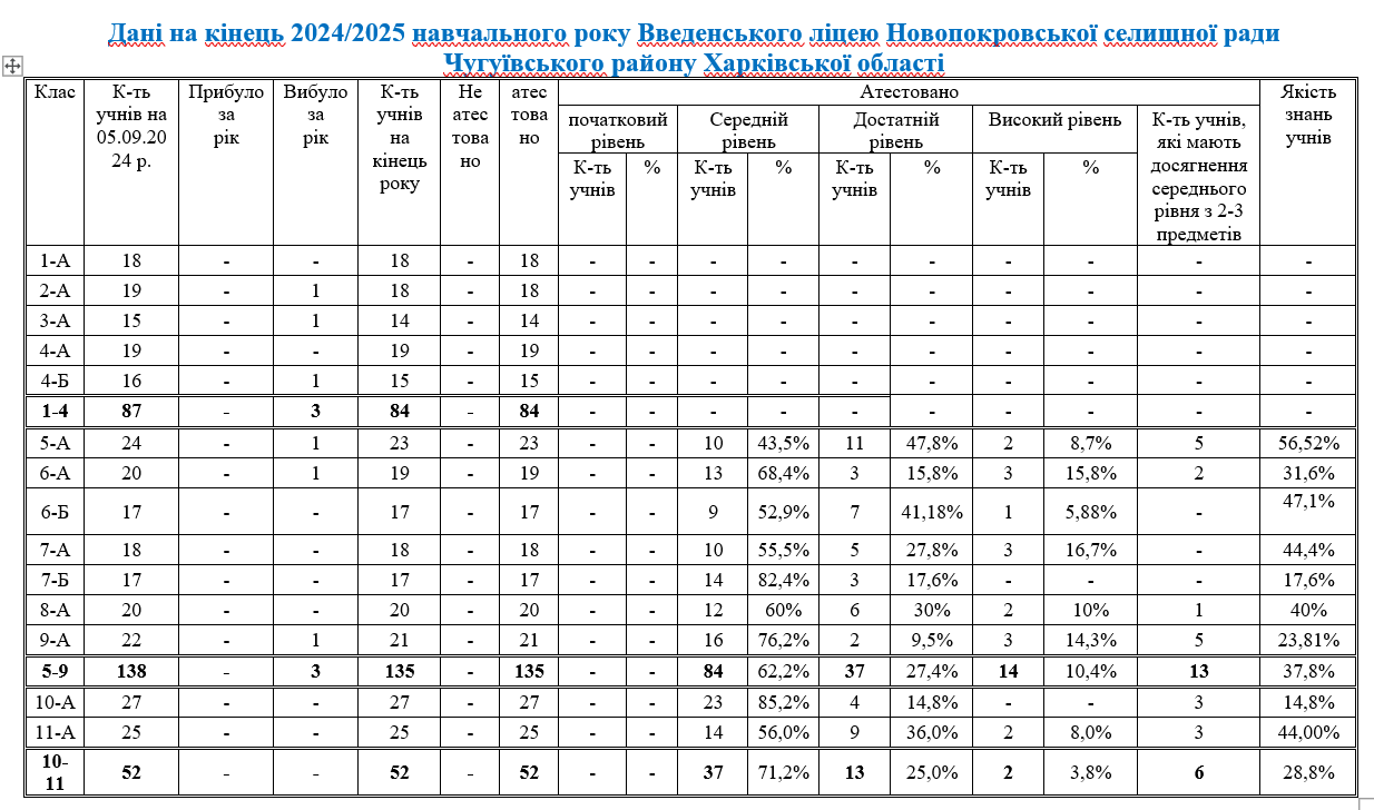 Порівняльний аналіз якості знань по предметах 2023/2024, 2024/2025 н.р.
