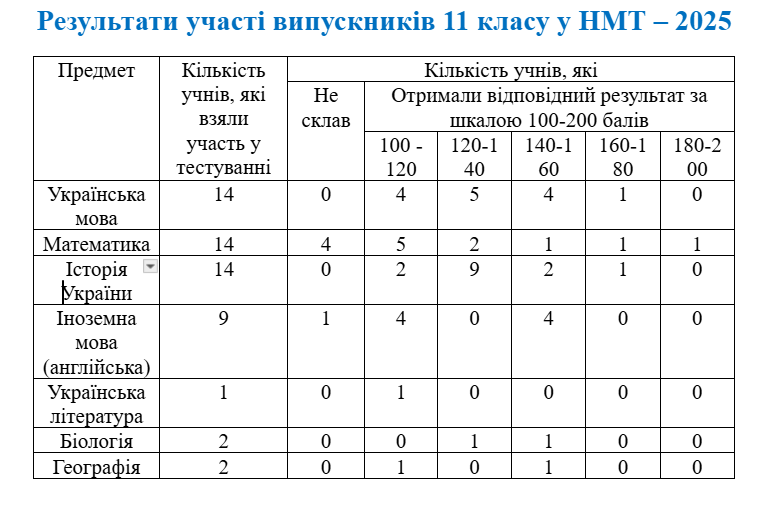 Результати тестування учнів 11 класів з історії України