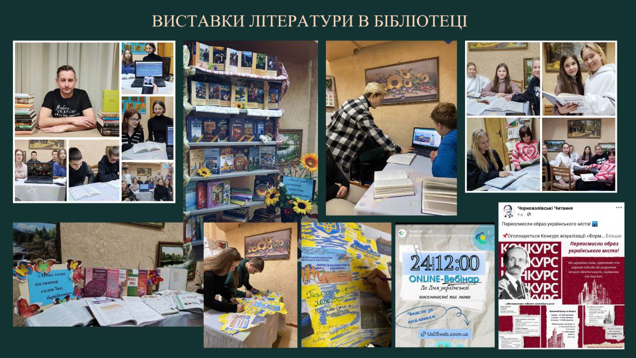 Протягом місячника в бібліотеці діяли тематичні онлайн виставки літератури, присвячені українській мові, літературі та сучасним письменникам України. Учні та вчителі мали змогу познайомитися з виданнями, хрестоматіями, збірками поезій і прозових творів, що прославляють красу й силу українського слова.